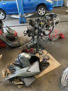 Na pegasu IE se menilo tesneni pod hlavou a omylem se povolil i sroub kyvky. To bylo zbytecne. Prikladam i foto, do jake faze rozborky se stroj dostal, pro vetsi predstavu o premitani o moznem problemu.